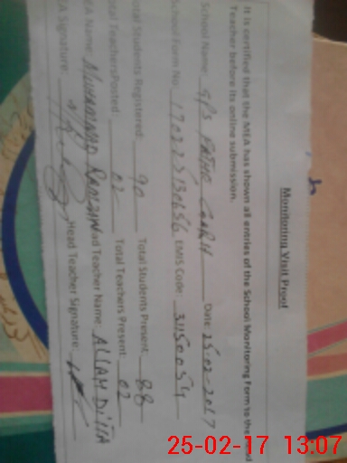 | EMIS Code: 31150054 | Name of School: GPS FATEH GARH | |||
