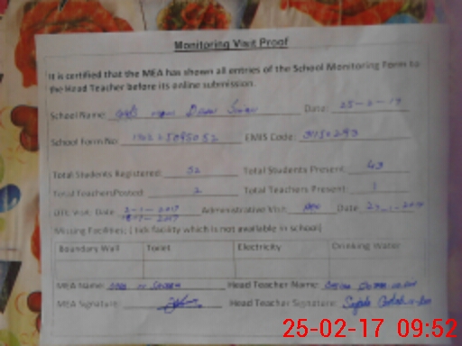 | Certified that this School was Inspected by the Undersigned MEA/DMO Today and the Information Stated Above is as Per Record. | |||||
