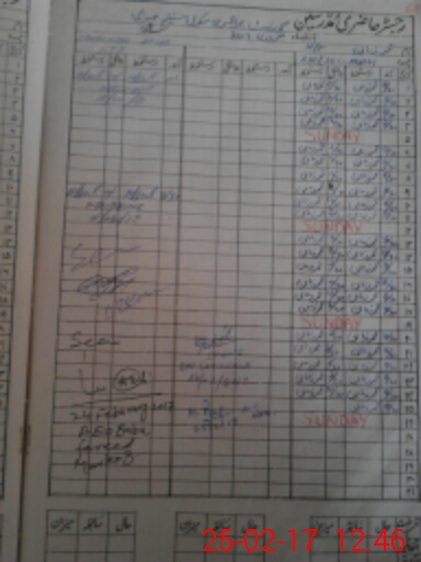 | CNIC | Full Name | Designation | R/C | Absence During Last Calender Month |