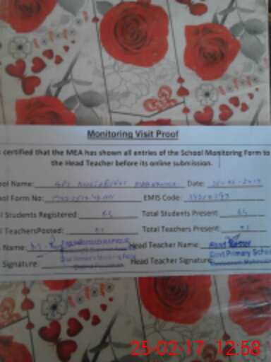| Certified that this School was Inspected by the Undersigned MEA/DMO Today and the Information Stated Above is as Per Record. | |||||