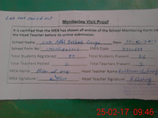 | EMIS Code: 31330688 | Name of School: GGPS ALLAH BUX GANGA | |||
