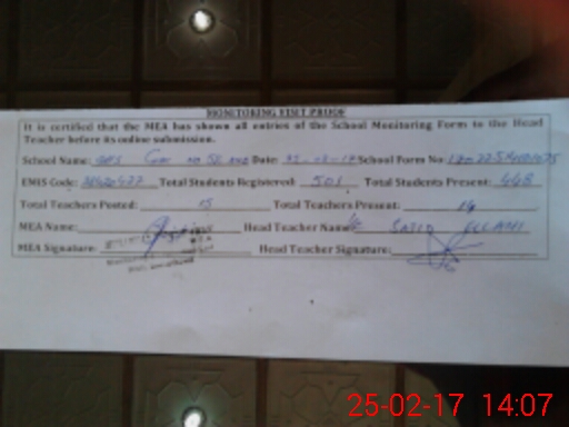 | Attendance Register | Head Teacher | MEA with School | Visit Proof |