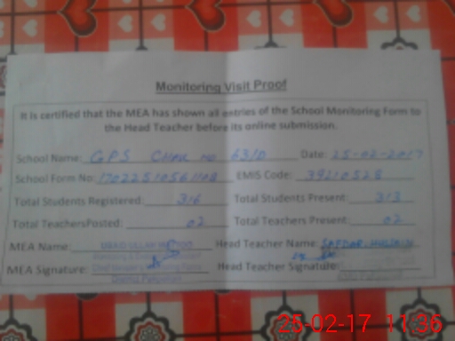 | EMIS Code: 39210528 | Name of School: GES CHAK NO. 63 D | |||