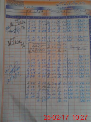 | CNIC | Full Name | Designation | R/C | Absence During Last Calender Month |