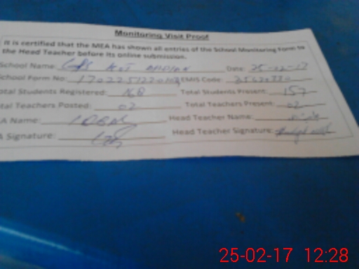 | Certified that this School was Inspected by the Undersigned MEA/DMO Today and the Information Stated Above is as Per Record. | |||||