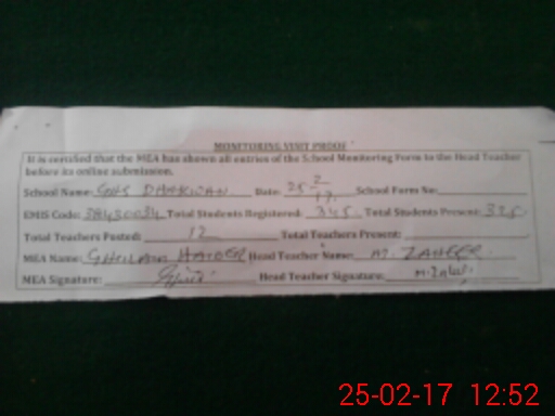 | Attendance Register | Head Teacher | MEA with School | Visit Proof |