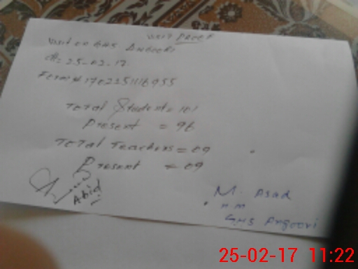 | Certified that this School was Inspected by the Undersigned MEA/DMO Today and the Information Stated Above is as Per Record. | |||||