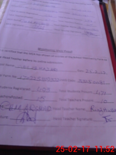| Certified that this School was Inspected by the Undersigned MEA/DMO Today and the Information Stated Above is as Per Record. | |||||