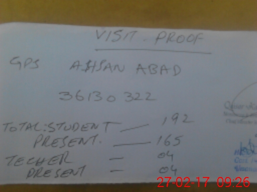 | EMIS Code: 36130322 | Name of School: GPS AHSAN ABAD | |||