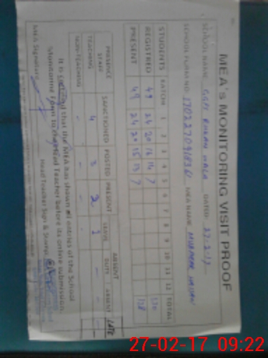 | Monitoring Date: 27-02-2017 | Start Time: 27-02-2017 08:56 AM | End Time: 27-02-2017 09:27 AM | Name of MEA: Z-**** Ha**** | |