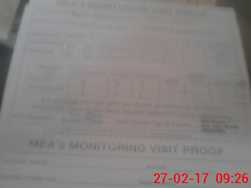 | Attendance Register | Head Teacher | MEA with School | Visit Proof |