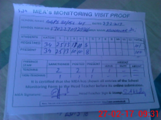 | Attendance Register | Head Teacher | MEA with School | Visit Proof |