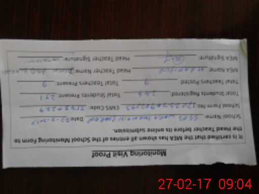 | Monitoring Date: 27-02-2017 | Start Time: 27-02-2017 08:40 AM | End Time: 27-02-2017 09:26 AM | Name of MEA: Mu**** iq**** (D**** | |
