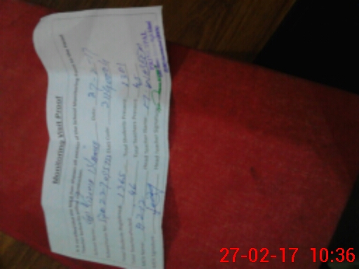 | Monitoring Date: 27-02-2017 | Start Time: 27-02-2017 09:57 AM | End Time: 27-02-2017 10:39 AM | Name of MEA: Ab**** Az**** Sh**** BN**** | |