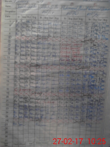 | CNIC | Full Name | Designation | R/C | Absence During Last Calender Month |