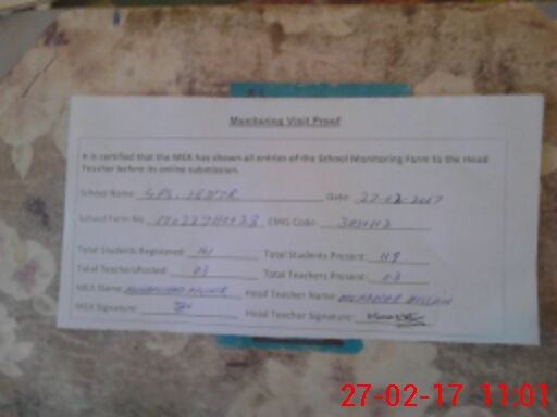 | Attendance Register | Head Teacher | MEA with School | Visit Proof |