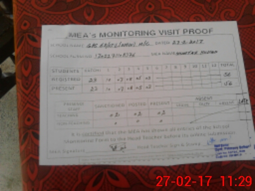| Attendance Register | Head Teacher | MEA with School | Visit Proof |