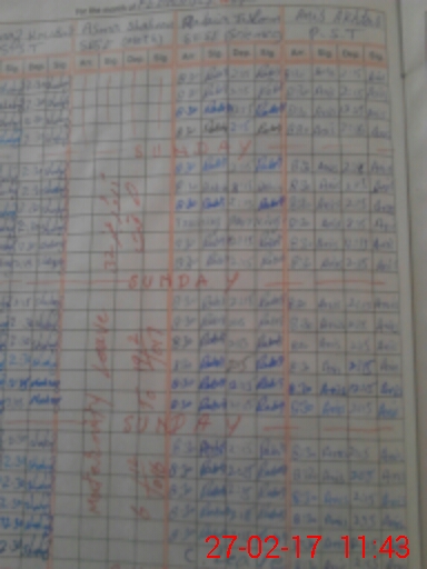 | CNIC | Full Name | Designation | R/C | Absence During Last Calender Month |