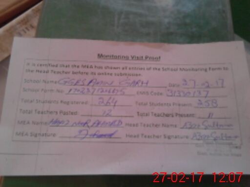 | EMIS Code: 31330137 | Name of School: GGES AMIN GARH | |||