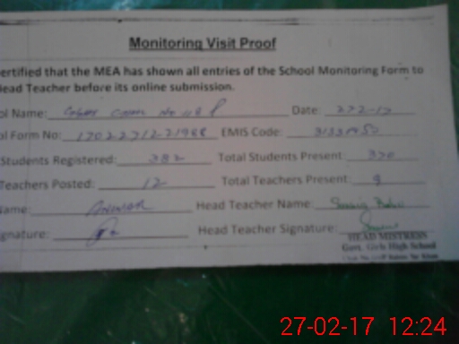 | Certified that this School was Inspected by the Undersigned MEA/DMO Today and the Information Stated Above is as Per Record. | |||||