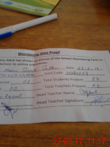 | Attendance Register | Head Teacher | MEA with School | Visit Proof |
