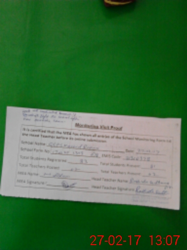 | Certified that this School was Inspected by the Undersigned MEA/DMO Today and the Information Stated Above is as Per Record. | |||||