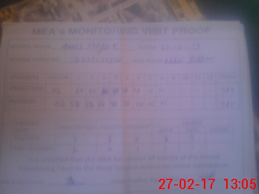 | Attendance Register | Head Teacher | MEA with School | Visit Proof |