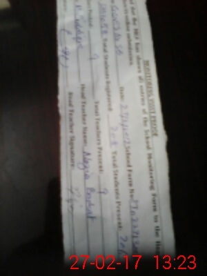 | School Visited by School Health & Nutrition Supervisor (No. of Visits) | 1 | Name1: | MUZAMAL HUSSAIN | Name2: | |