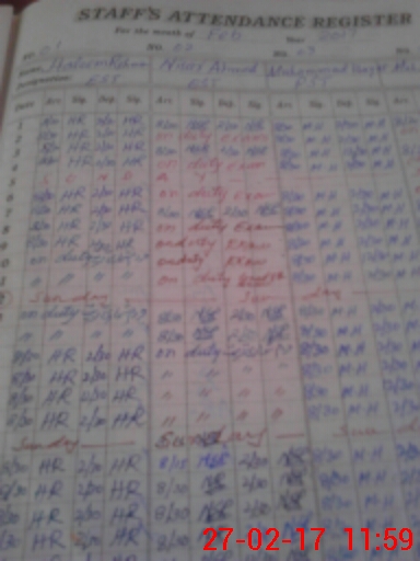 | CNIC | Full Name | Designation | R/C | Absence During Last Calender Month |