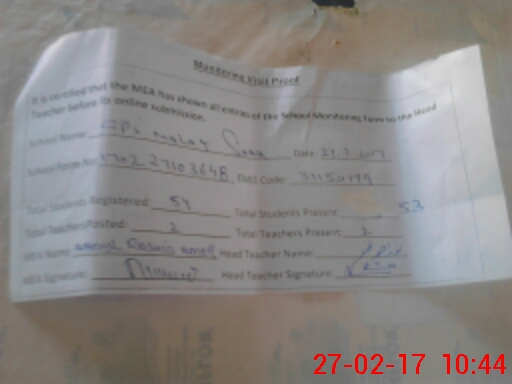 | Attendance Register | Head Teacher | MEA with School | Visit Proof |