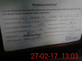 | Certified that this School was Inspected by the Undersigned MEA/DMO Today and the Information Stated Above is as Per Record. | |||||