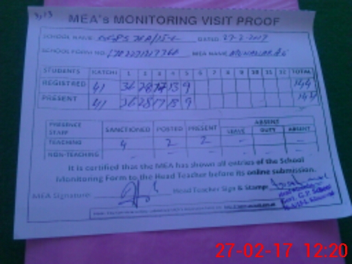 | Attendance Register | Head Teacher | MEA with School | Visit Proof |