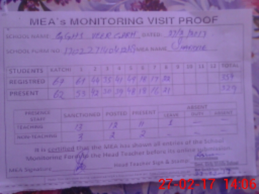 | EMIS Code: 36410359 | Name of School: GMES VEER GARH 6 KASSI, KABIRWALA | |||