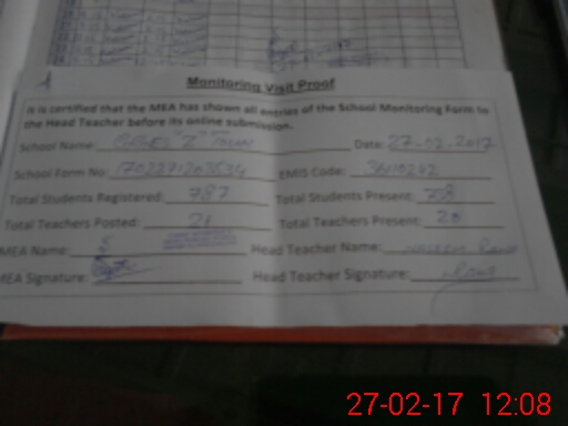 | Attendance Register | Head Teacher | MEA with School | Visit Proof |