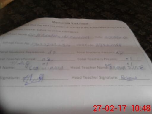 | Attendance Register | Head Teacher | MEA with School | Visit Proof |