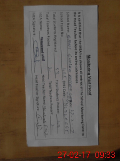 | Attendance Register | Head Teacher | MEA with School | Visit Proof |