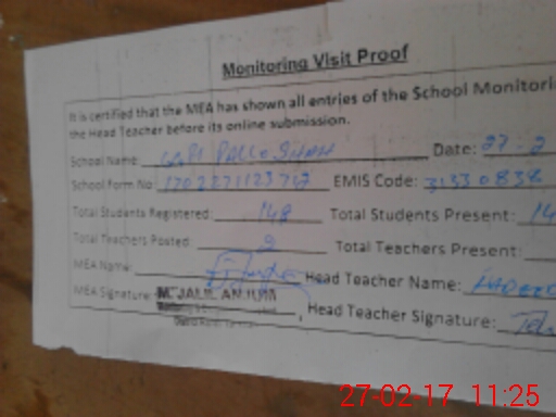 | Attendance Register | Head Teacher | MEA with School | Visit Proof |