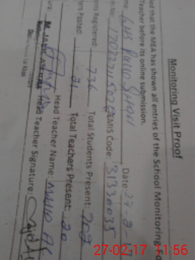 | EMIS Code: 31330035 | Name of School: GHS PULLO SHAH | |||