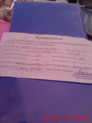 | Attendance Register | Head Teacher | MEA with School | Visit Proof |