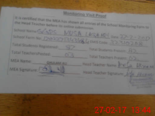 | EMIS Code: 32310208 | Name of School: GGPS MUSA LAGHARI | |||