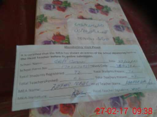 | Attendance Register | Head Teacher | MEA with School | Visit Proof |