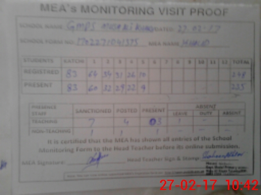 | Attendance Register | Head Teacher | MEA with School | Visit Proof |