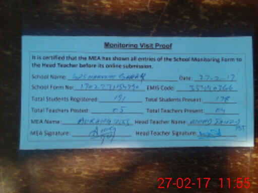 | Attendance Register | Head Teacher | MEA with School | Visit Proof |