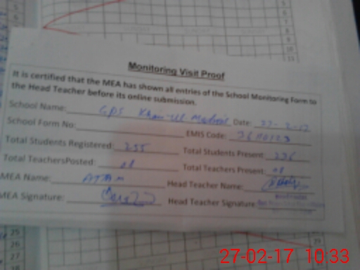 | EMIS Code: 36110123 | Name of School: GPS KHAIR-UL-MADARIS AURANGZEB ROAD MOHALLA GAOWSHALA | |||