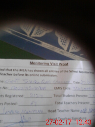 | Certified that this School was Inspected by the Undersigned MEA/DMO Today and the Information Stated Above is as Per Record. | |||||