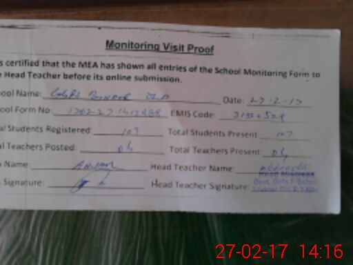 | Certified that this School was Inspected by the Undersigned MEA/DMO Today and the Information Stated Above is as Per Record. | |||||