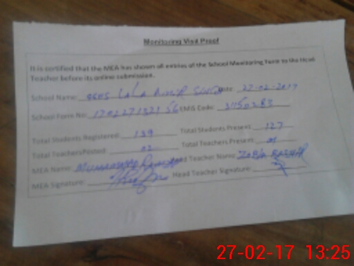 | Attendance Register | Head Teacher | MEA with School | Visit Proof |
