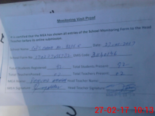 | Certified that this School was Inspected by the Undersigned MEA/DMO Today and the Information Stated Above is as Per Record. | |||||