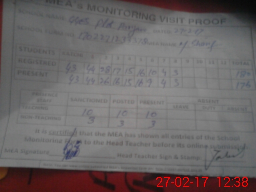 | Attendance Register | Head Teacher | MEA with School | Visit Proof |