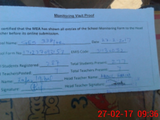 | Certified that this School was Inspected by the Undersigned MEA/DMO Today and the Information Stated Above is as Per Record. | |||||